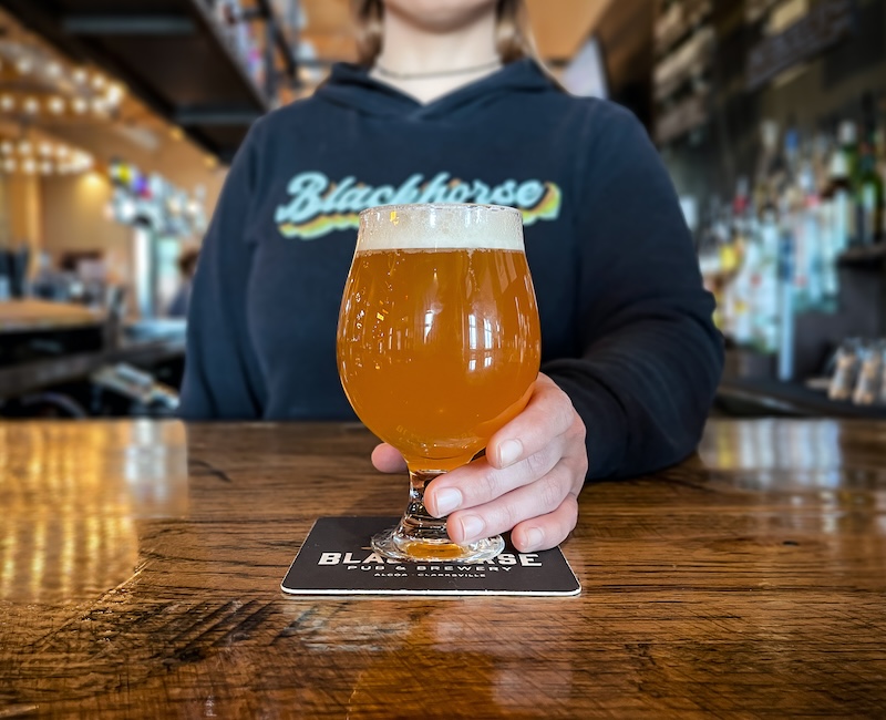 Blackhorse Brewery produced this Hazy IPA to accompany you on your outdoor adventures underneath the luminous stars. While tilting & sipping this brew towards the night sky, take in the sights & the out-of-this-world flavors of the Galaxy, Centennial, & Zythos hops, which give this brew a heavy orange, citrus, hop aroma while maintaining a low bitterness.