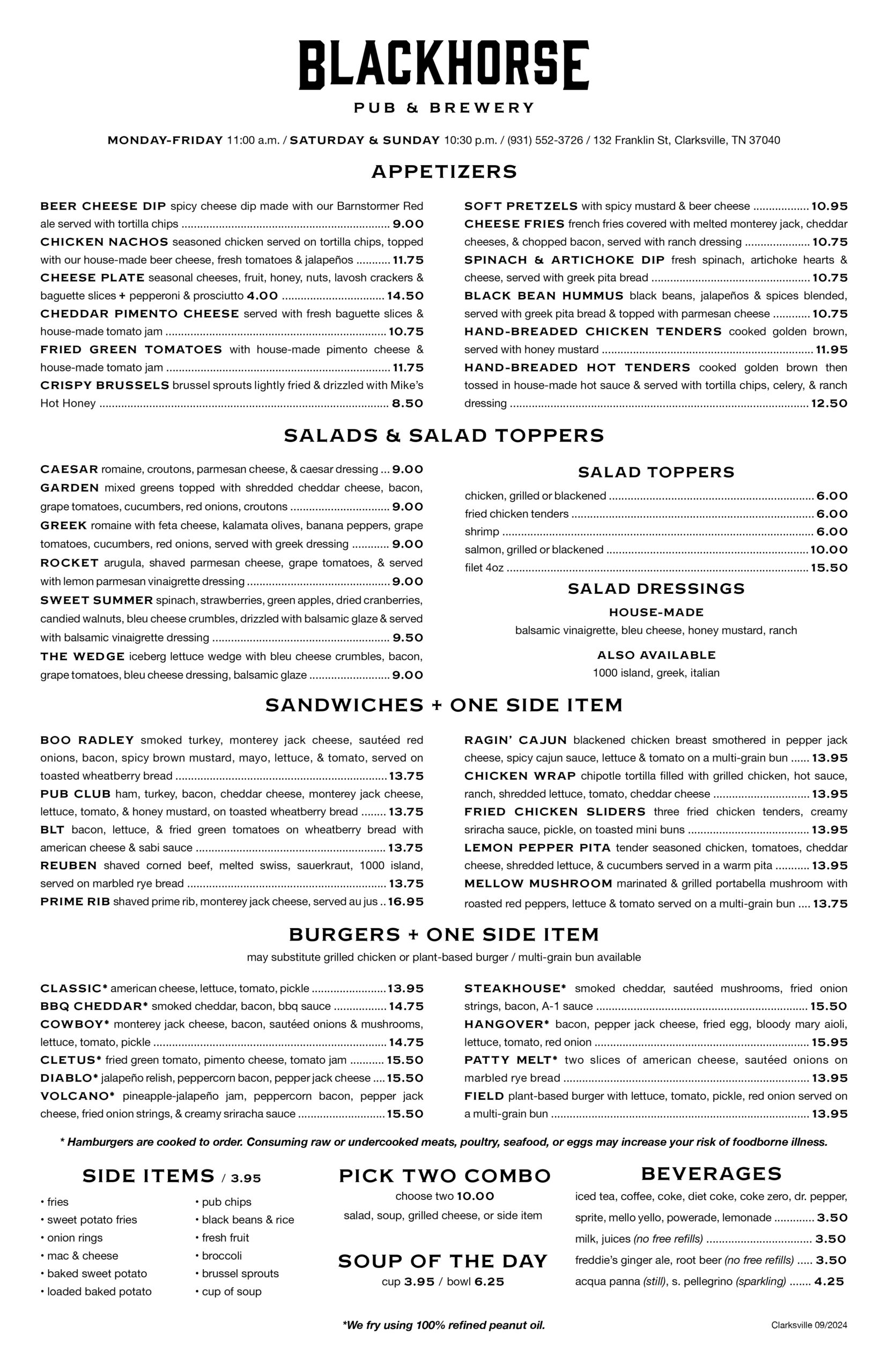 Clarksville Menu