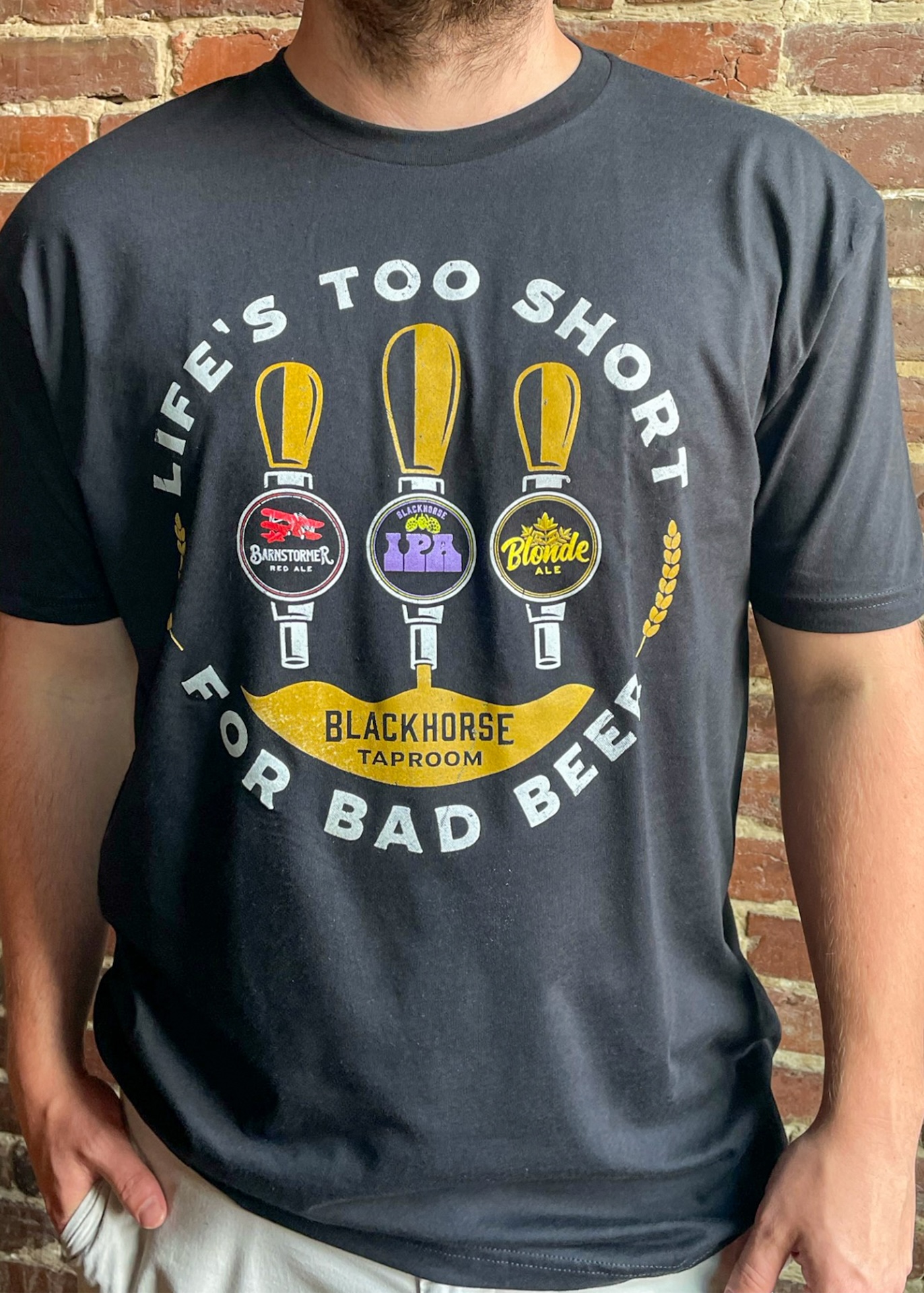 the quote “Life’s Too Short For Bad Beer” on the front.