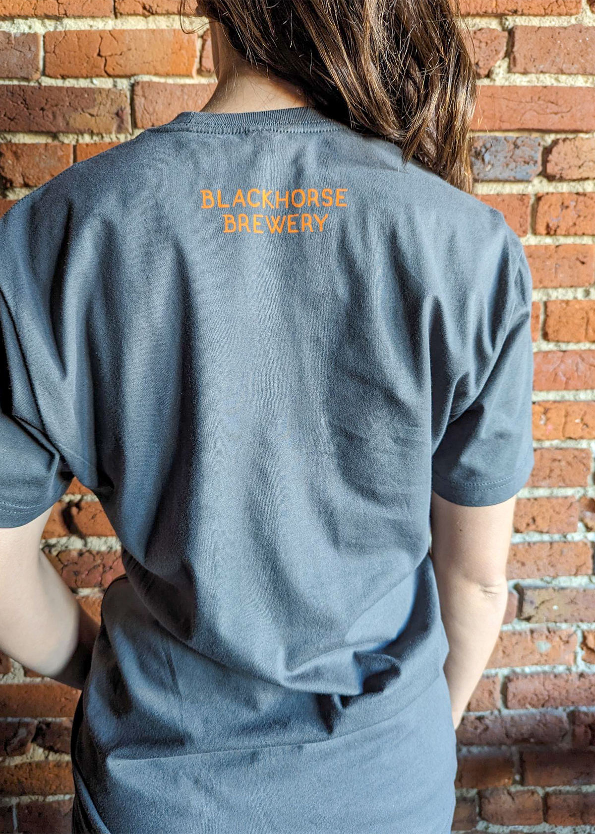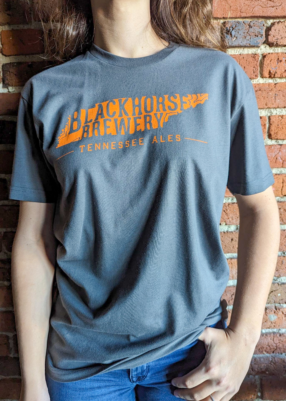 Slightly fitted, tri-blend Next Level brand t-shirt. Featuring the state of Tennessee logo on the front and Blackhorse Brewery tagline on the back.